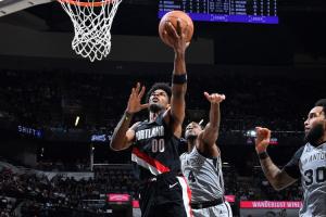 24直播网04月22日讯 西部首轮系列赛G2,开拓者106-103力克马刺大比分1-1平。