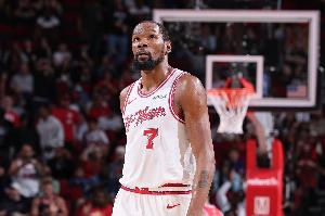 杜兰特本场复出,但12中7,拿到23分6板4助,另有9失误!