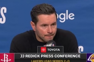 24直播网4月22日讯 NBA季后赛,湖人在主场以101-94击败火箭,大比分2-0领先。赛后雷迪克接受了媒体采访,以下为采访全文。