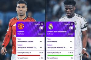 根据数据,琼阿梅尼在传球成功率、争顶和防守效率上明显占优,而卡塞米罗则在抢断次数和向前传球上更为积极。