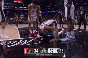 好痛!文班倒地后下巴&侧脸重重摔在地板上 因脑震荡退赛!