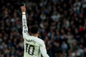24直播网4月22日讯 西甲第33轮比赛,皇马在主场迎战阿拉维斯。本场比赛,姆巴佩在第30分钟破门得分,帮助主队取得1-0的领先。