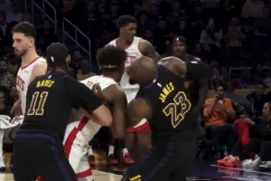 24直播网4月23日讯 在昨日湖人101-94主场击败火箭的系列赛G2赛后,一位湖人球迷晒出了他在场边拍摄的现场片段。