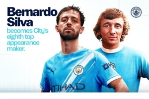 24直播网4月23日讯 曼城在本轮英超客战伯恩利,队长B席首发也升至队史出场榜第8位。