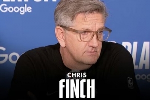 芬奇:是的,就是那样。我们需要有人杀入禁区,带着力量去打球。我们在比赛开局阶段在外线飘着投得太多了。一旦他撕开了内线防守,我们就能让球运转起来。然后爱德华兹也开始发威,我们更多地杀入了内线。那就是我们必须做的。特别是当我们在比赛开局投篮不中的时候,我们不能一直飘在外面。但一旦我们有了良好的球权转移,投篮自然就会命中,通常都是这样。
