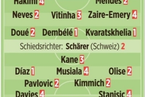 24直播网4月29日讯 巴黎在本轮欧冠主场5-4击败拜仁,《图片报》按照惯例为两队进行了赛后评分。