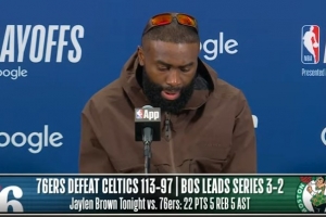 24直播网4月29日讯 NBA季后赛,凯尔特人97-113不敌76人,总比分3-2领先。布朗赛后接受了媒体采访,以下为采访全文。