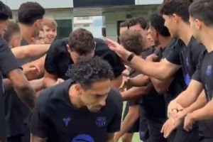 24直播网4月29日讯 巴萨官方更新社媒动态,晒出球员们欢迎拉菲尼亚、贝尔纳尔、克里斯滕森回归的视频。